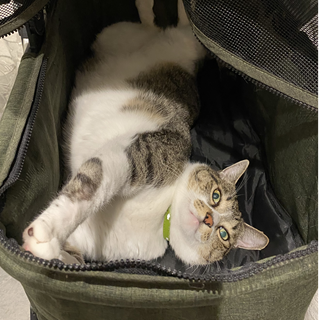 防災訓練としてペット用乳母車で2匹を連れ出したら、
