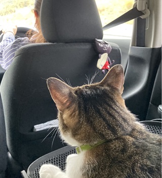 お守り買ってきてくれたのかニャ?(寅次郎)